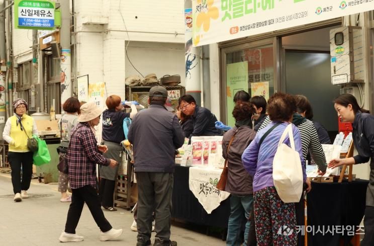 이번 행사는 지난해 '생각 솟는 실험실'을 통해 문화 공유 공간으로 탈바꿈한 상설시장 내 ‘문화상회’를 거점으로 진행됐으며, 예천군 농산물 가공제품 공동브랜드 '맛뜰리:예'와 시장 상인들이 협력해 시장에 새로운 활력을 불어넣는 데 주안점을 뒀다.