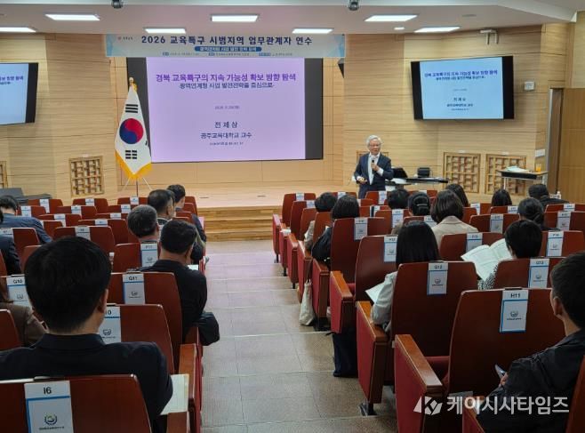 (케이시사타임즈) 경북교육청은 28일 구미시에 있는 경상북도교육청연수원 소강당에서 도내 15개 교육특구 시범 지역의 교육지원청과 지자체 관계자 80여 명이 참석한 가운데 ‘2026 교육특구 시범지역 업무 관계자 연수’를 개최했다고 밝혔다.