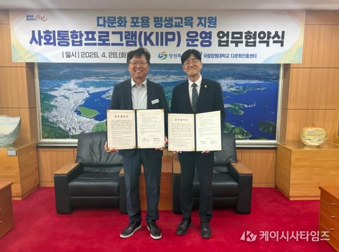 (케이시사타임즈) 창원특례시는 시청 접견실에서 국립창원대학교와 외국인 주민의 안정적인 지역사회 정착 지원을 위한 '사회통합프로그램 운영' 업무협약을 체결했다고 밝혔다.