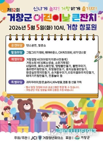 이번 행사는 거창청년회의소가 주관하며, 오전 10시부터 오후 3시까지 다채롭고 풍성한 프로그램으로 어린이와 가족 모두에게 특별한 하루를 선사할 예정이다.