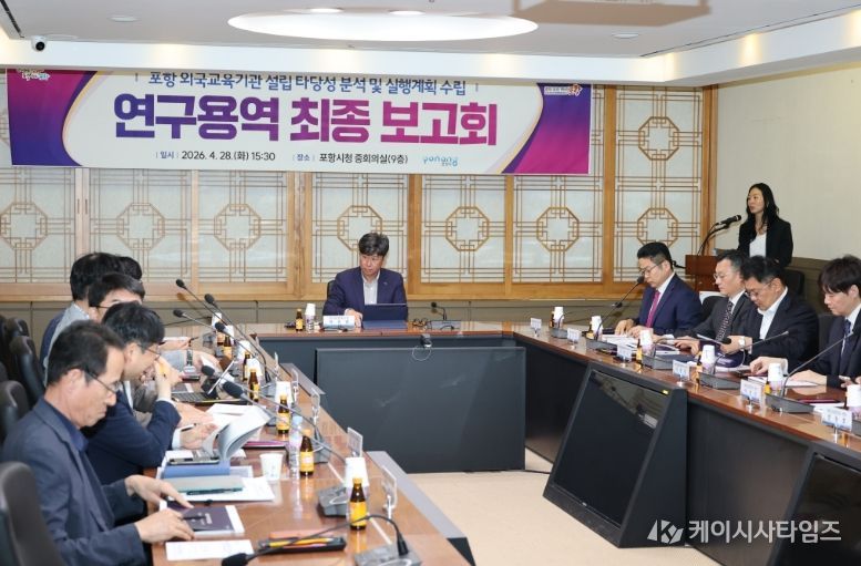 (케이시사타임즈) 포항시는 28일 경상북도, 대구경북경제자유구역청이 참석한 가운데 ‘외국교육기관 설립 타당성 조사 및 실행계획 수립 연구용역’ 최종보고회를 개최했다.