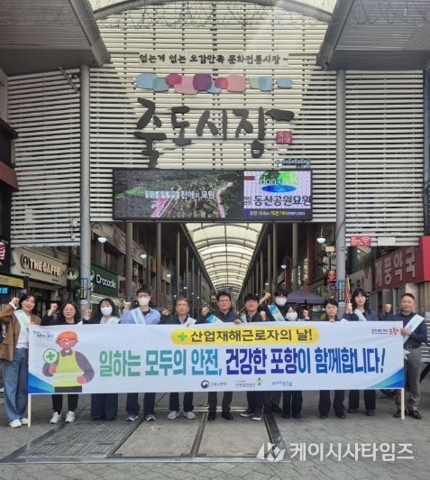 (케이시사타임즈) 포항시는 28일 ‘산업재해근로자의 날’을 맞아 죽도시장 일원에서 유관기관과 함께 시민과 근로자를 대상으로 산업재해 예방 및 안전문화 확산을 위한 합동 캠페인을 실시했다.