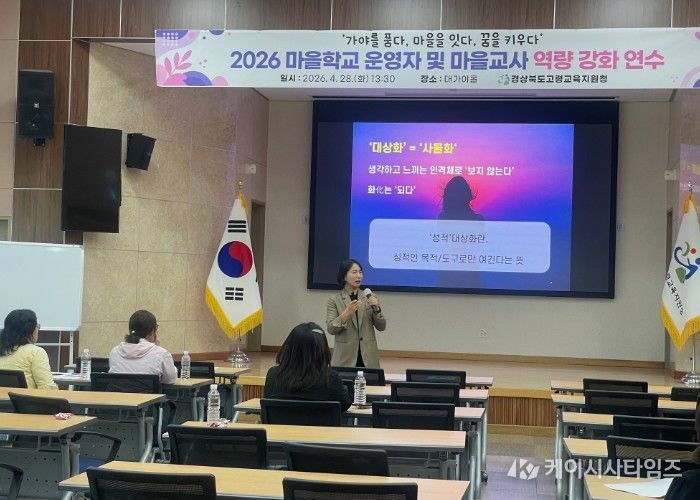 (케이시사타임즈) 경상북도고령교육지원청은 4월 28일 오후 1시 30분, 고령교육지원청 대가야홀(3F)에서 관내 마을학교 운영자 및 마을교사를 대상으로 ‘2026 고령미래교육지구 마을학교 운영자 및 마을교사 역량강화 연수’를 개최했다.