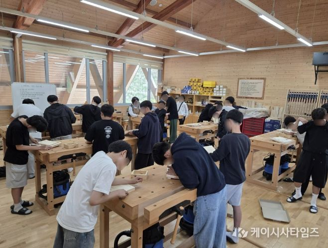 (케이시사타임즈) 상주시 성주봉자연휴양림의 상주목재문화체험장과 힐링센터에서는 지난 4월 27일 안동경덕중학교 학생들 150여명을 대상으로 목재문화체험장과 힐링센터에서 독서대 만들기 체험과 숲 해설 체험을 진행했다.