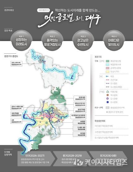 (케이시사타임즈) 대구광역시는 변화된 도시 여건과 미래 공간구조를 반영한 ‘2040 대구광역시 경관계획’을 수립하고, 도시 전반의 경관관리 체계를 새롭게 정립한다.