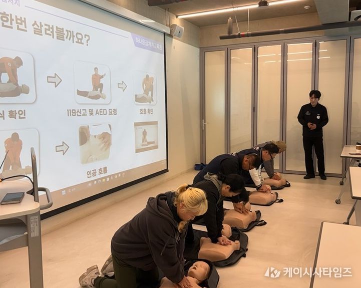주요 교육 내용은 ▲심폐소생술(CPR) ▲자동심장충격기(AED) 사용법 ▲응급상황 발생 시 초기 대처 요령 등으로 구성됐다. 특히 단순 이론 교육에 그치지 않고, 마네킹을 활용한 실습을 병행해 근무자들이 위급 상황 발생 시 당황하지 않고 신속하고 정확하게 대응할 수 있도록 했다.