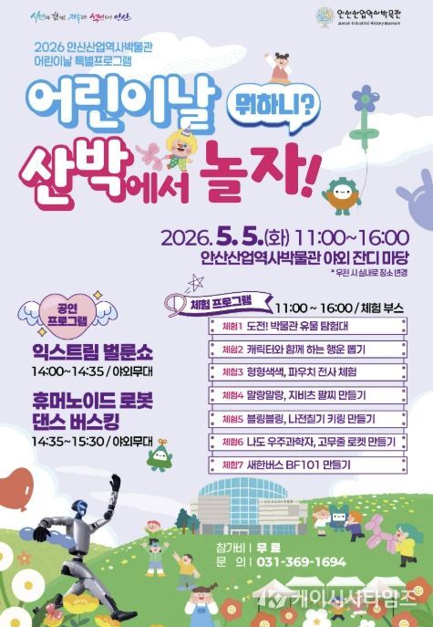 (케이시사타임즈) 안산시는 내달 5일 어린이날을 맞아 안산산업역사박물관에서 어린이날 특별프로그램 ‘어린이날 뭐하니? 산박에서 놀자!’를 개최한다고 29일 밝혔다.