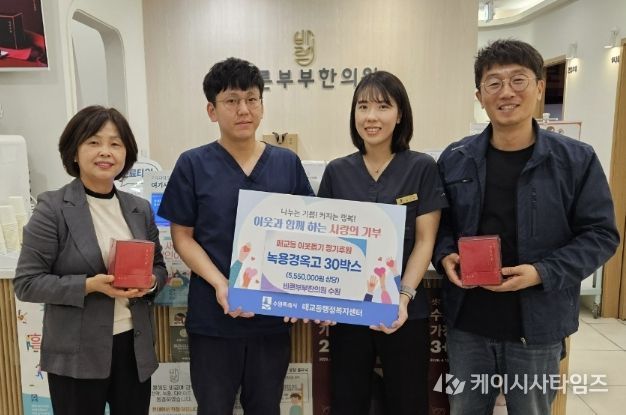 바른부부한의원은 2022년 6월 매교동에 개원한 이래 지역사회에 대한 깊은 애정으로 저소득층 노인들의 건강을 위해 2025년 4월 매교동 행정복지센터와 업무협약을 맺고 녹용경옥고를 정기적으로 기탁하고 있다. 현재까지 총 140박스(26,000천원 상당)를 지원해 취약계층 어르신들의 기력 회복과 건강 관리에 실질적인 도움을 드리고 있다.