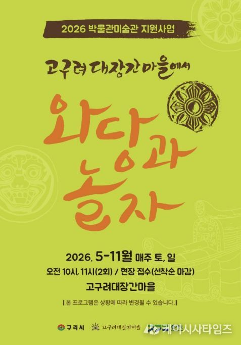 (케이시사타임즈) 구리시는 오는 5월 2일부터 11월 1일까지 매주 주말 고구려대장간마을에서 2026년 경기도 박물관·미술관 지원사업의 하나로 ‘고구려대장간마을에서 와당과 놀자’ 체험 행사를 운영한다고 밝혔다.