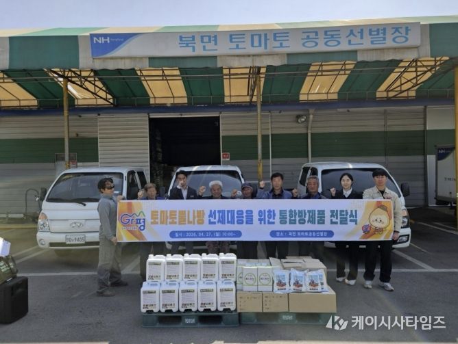 (케이시사타임즈) 가평군은 최근 북면 토마토 공동선별장에서 토마토 뿔나방 예방을 위한 통합방제물품 전달식을 가졌다.