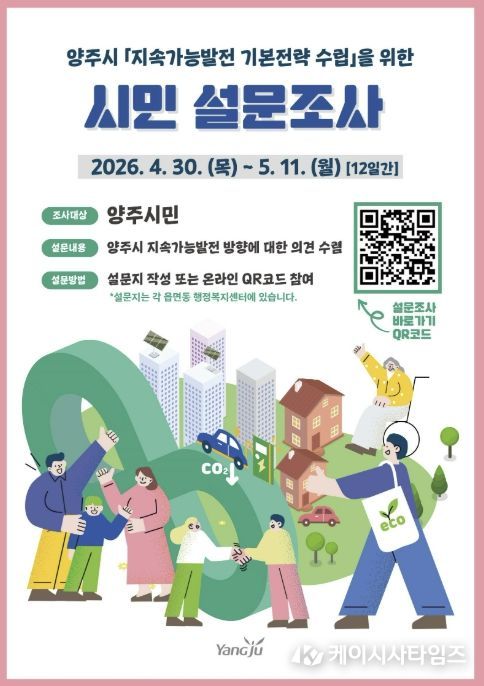(케이시사타임즈) 양주시는 ‘지속가능발전 기본전략 및 추진계획’ 수립을 위해 시민 의견을 수렴하는 설문조사를 실시한다.