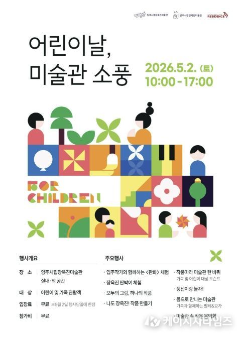 (케이시사타임즈) 양주시는 오는 5월 2일 양주시립장욱진미술관 실내외 공간에서 어린이날 맞이 가족 문화행사 ‘어린이날, 미술관 소풍’을 개최한다.