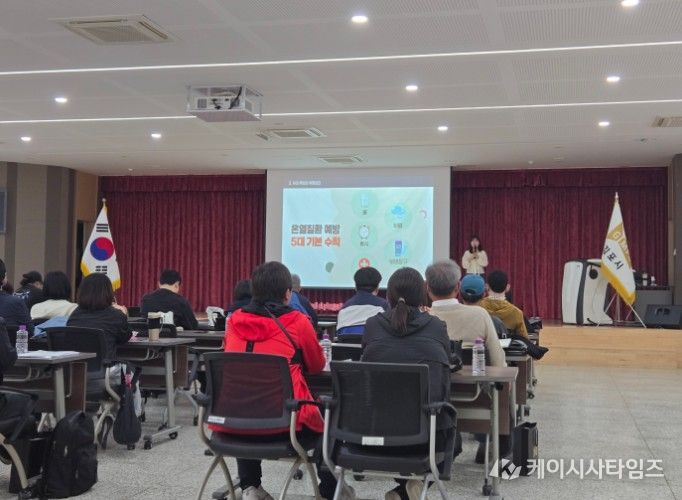 (케이시사타임즈) 김포시가 지난 28일 공공일자리 사업 참여자들의 안전사고 예방과 건강 증진을 위해 전문 기관과 연계한 ‘2026년 상반기 안전·보건 2차 집합 정기교육’을 실시했다.
