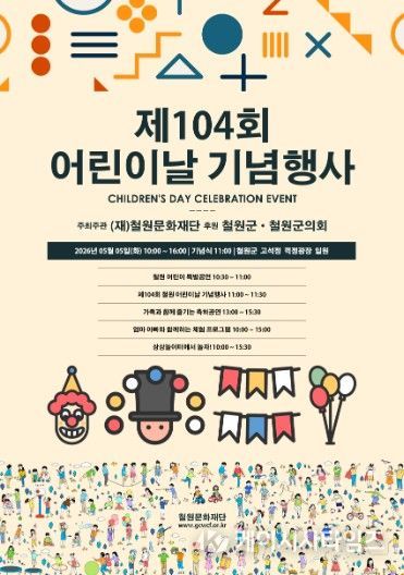 (케이시사타임즈) (재)철원문화재단은 오는 5월 5일 어린이날을 맞아 고석정 일원에서 ‘제104회 어린이날 기념행사’를 개최한다고 밝혔다.