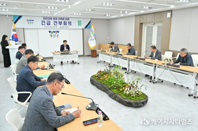 (케이시사타임즈) 정선군은 최승준 정선군수가 28일 제9회 전국동시지방선거 예비후보로 등록함에 따라 군정 공백을 최소화하고 주요 현안의 안정적인 추진을 위해 권한대행 체제로 전환하고, 이에 따른 긴급 간부회의를 개최했다.