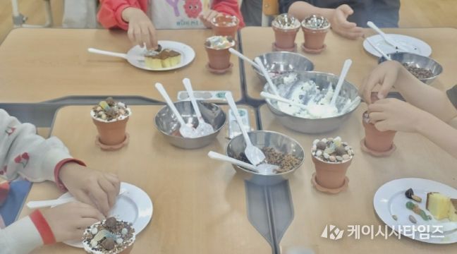 수업은 불이나 오븐을 사용하지 않는 안전한 방식으로 진행됐다. 1~2교시에는 카스테라와 생크림, 젤리 등을 활용해 ‘나만의 컵케이크’를 만들며 학생들이 재료의 색과 모양을 조합해 개성과 상상력을 표현했다. 이어 3~4교시에는 오트밀과 초콜릿을 활용한 ‘오트밀 초코 에너지볼’ 만들기를 통해 재료를 섞고 빚는 과정을 경험했다.