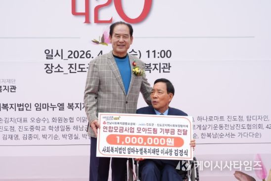아울러, 이날에는 사회복지법인 임마누엘복지재단(이사장 김경식)이 지역의 발전과 취약계층을 위해 ▲진도군인재육성장학회 ▲고향사랑기부제 ▲모아드림에 각 100만 원씩, 총 300만 원을 기부했으며, 나눔 실천을 위해 ‘장애인사회공헌 420챌린지’를 통해 모금한 42만 원을 모아드림에 기탁 했다.