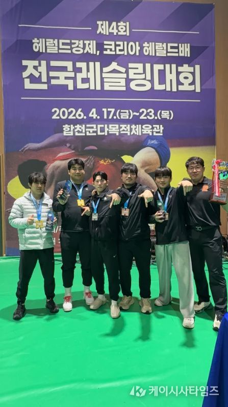(케이시사타임즈) 칠곡군청 레슬링팀이 17일부터 합천다목적체육관에서 개최된‘제4회 헤럴드경제· 코리아헤럴드배 전국레슬링대회’에서 금메달 1개와 은메달 2개, 동메달 2개를 획득하며 단체종합우승을 거머쥐었다.