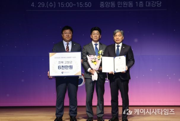 (케이시사타임즈) 고창군이 29일 정부세종청사에서 열린 ‘2025년 민원서비스 종합평가 시상식’에서 행정안전부장관 기관 표창을 수상하고 인센티브로 특별교부세 6000만원을 확보했다고 밝혔다.