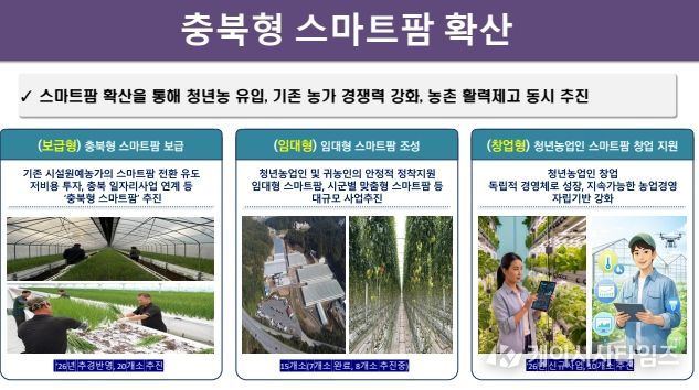 (케이시사타임즈) 충청북도가 청년농업인의 안정적 정착과 기존 농업인의 경쟁력 강화, 미래형 농업 전환을 위해 스마트팜 확산 3대 전략을 본격 추진한다고 밝혔다.