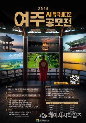 (케이시사타임즈) 여주세종문화관광재단은 여주시 관광 콘텐츠를 활용한 시민 참여형 영상 제작 프로젝트인 '2026 여주 AI 뮤직비디오 공모전'을 개최한다고 밝혔다.