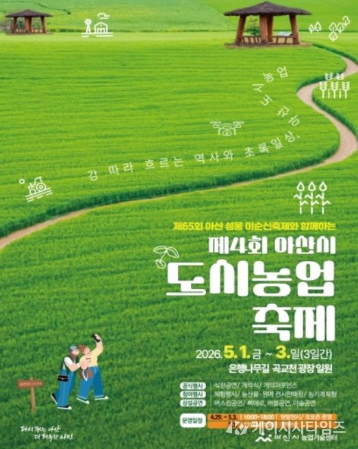 (케이시사타임즈) 아산시는 ‘제65회 아산 성웅 이순신축제’와 연계한 ‘제4회 아산시 도시농업축제’를 오는 5월 1일부터 3일까지 3일간 은행나무길 곡교천 광장 일원에서 개최한다.