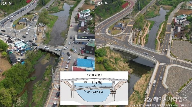 시는 이 문제를 해결하고자 고기교를 길이 46.4m, 폭 20m 4차로로 확장한다. 고기교 일대가 상습 침수 구역인 점을 고려해 교량 높이도 3.1m 더 높인다.
