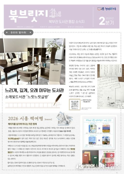 (케이시사타임즈) 시흥시 소래빛도서관은 북부권 공공ㆍ작은도서관의 다양한 소식을 한눈에 전하는 분기별 소식지 ‘북브릿지(북부릿지)’ 2026년 2분기호를 발행했다.