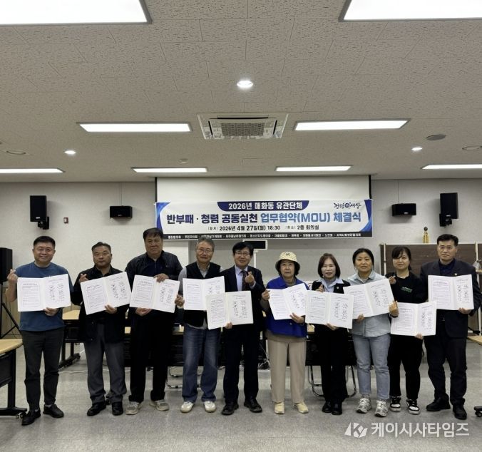 이날 협약식에는 매화동 행정복지센터와 10개 관계단체가 참여했으며, 청렴한 지역사회를 구현하고 민관 협력을 기반으로 청렴 분위기를 확산하기 위해 마련됐다.