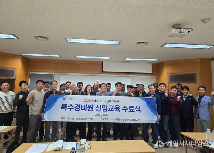 (케이시사타임즈) 국가보훈부 인천보훈지청 제대군인지원센터는 4월 30일 16시 경기도 김포시 소재 사)한국항공보안협회 민간경비교육원에서 제대군인 전문위탁교육인“2026년 특수경비원 신임교육과정”수료식을 개최했다고 밝혔다.