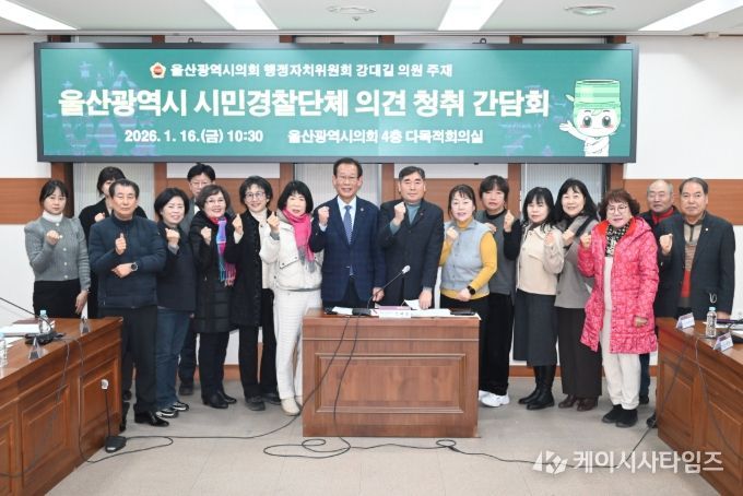 케이시사타임즈 관리자 기자 | 울산시의회 강대길 의원은 16일 의회 4층 다목적회의실에서 주민, 시민경찰단체, 경찰위원회ㆍ경찰청 관계 부서 등과 함께 ‘울산광역시 시민경찰단체 의견 청취’ 간담회를 개최했다.