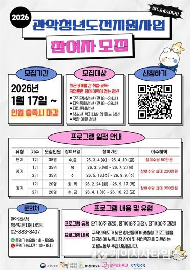케이시사타임즈 관리자 기자 | 관악구가 구직을 단념한 청년들의 사회 진입을 돕기 위해 오는 1월 17일부터 ‘2026년 청년도전지원사업’ 참여자를 모집한다.