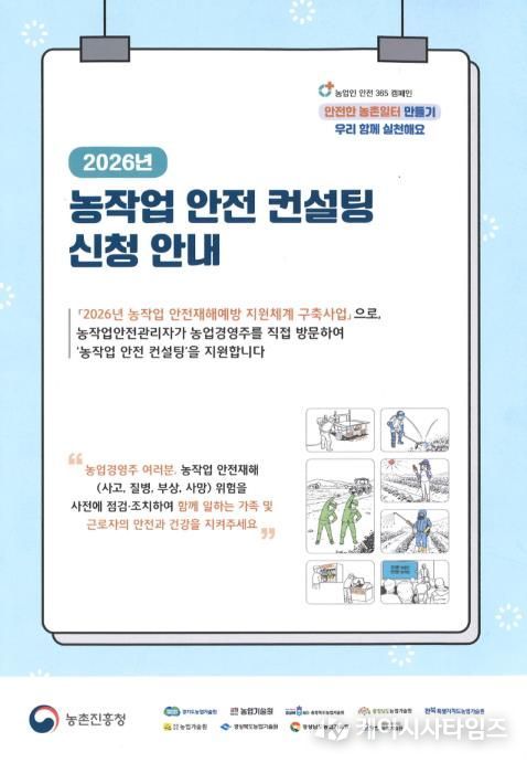 케이시사타임즈 관리자 기자 | 안동시는 농업 분야 중대재해 예방과 안전한 농작업 환경 조성을 위해 '2026년 농작업 안전재해예방 지원체계 구축사업'의 일환으로 ‘농작업 안전보건관리 컨설팅’ 참여농가를 모집한다고 1월 16일(금) 밝혔다.