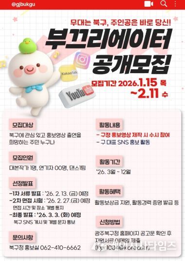 문인 북구청장은 “부끄리에이터는 주민이 홍보의 주체로 참여하는 소통 행정의 상징”이라며 “주민의 일상과 공감이 담긴 콘텐츠를 통해 구정이 더 가깝게 전달되길 기대한다”고 말했다.