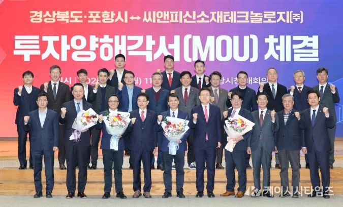 케이시사타임즈 관리자 기자 | 포항시와 경상북도는 19일 포항시청 대회의실에서 씨앤피신소재테크놀로지㈜와 5,000억 원 규모의 투자양해각서(MOU)를 체결했다.