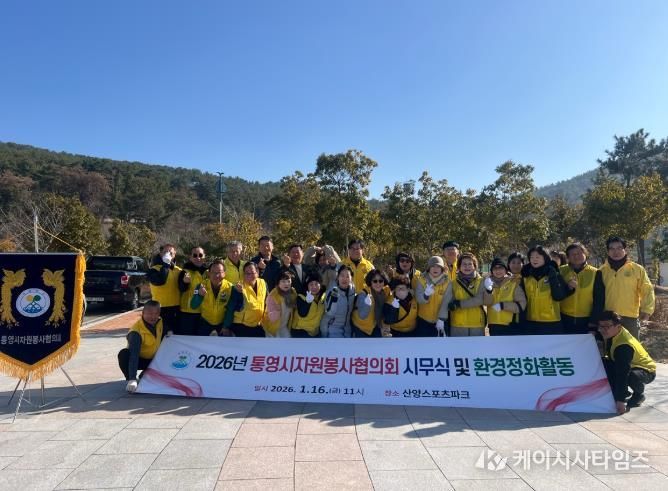 케이시사타임즈 관리자 기자 | 통영시자원봉사협의회는 지난 16일 산양스포츠파크 일원에서 2026년 시무식과 함께 환경정화활동을 진행하며 새해 공식 활동의 막을 올렸다.