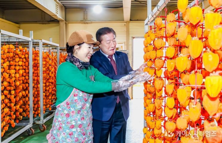 케이시사타임즈 관리자 기자 | 함안군은 제15회 함안곶감축제 준비와 설 명절을 앞두고 곶감 건조 작업이 한창인 가운데, 조근제 함안군수가 지난 16일 함안면 파수리의 한 곶감 농가를 찾아 현장을 살피고 농가를 격려했다고 밝혔다.