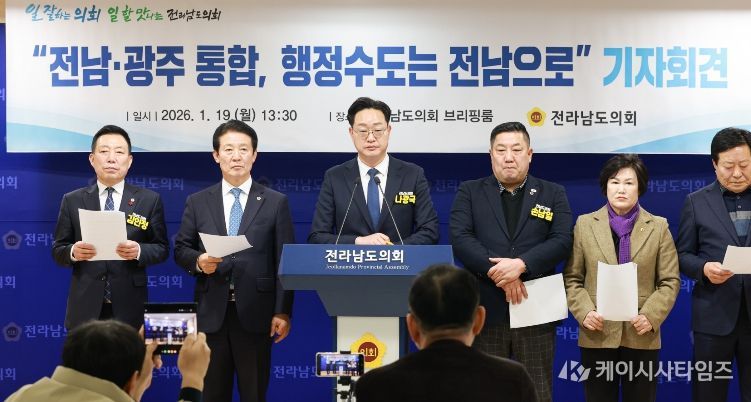 케이시사타임즈 관리자 기자 | 나광국(더불어민주당·무안2)은 1월 19일 13시 30분 전남도의회 브리핑룸에서 기자회견을 열고, “향후 출범할 통합 지자체의 행정청사와 자치단체장의 근무지는 반드시 현재 전남도청이어야 한다”고 강력히 주장했다.