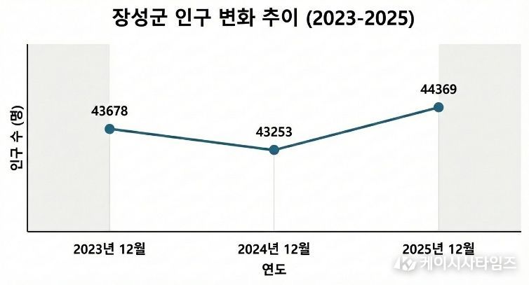 케이시사타임즈 관리자 기자 | 장성군이 지방 소멸과 인구 감소 우려를 해소하는 유의미한 통계를 발표했다. 군에 따르면 지난해 12월 집계된 장성군의 인구는 4만 4369명으로, 1년 전보다 1116명 증가한 것으로 나타났다.