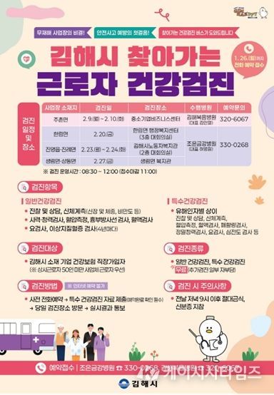 김해시는 관내 조은금강병원, 김해복음병원과 협력해 기업 밀집지역을 순회하며 검진을 제공한다.