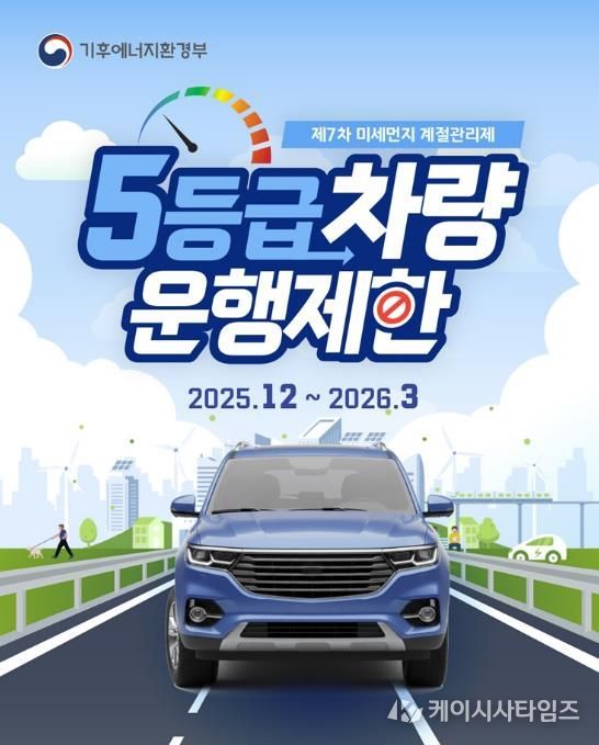 케이시사타임즈 관리자 기자 | 파주시는 제7차 계절관리제 기간인 2025년 12월부터 2026년 3월까지 배출가스 5등급 차량에 대한 단속을 실시하고 있다.