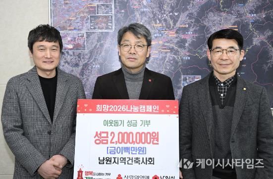 케이시사타임즈 관리자 기자 | 남원시는 지난 20일, 남원지역건축사회가 ‘희망 2026 나눔 캠페인’에 성금 200만 원을 기부했다고 밝혔다.