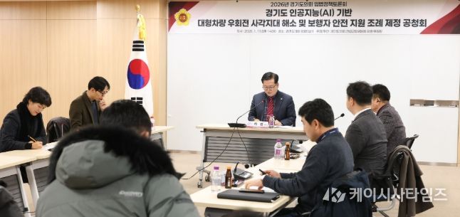 케이시사타임즈 관리자 기자 | 경기도의회 건설교통위원회 허원 위원장(국민의힘·이천2)은 19일 경기도의회 중회의실에서 '경기도 인공지능(AI) 기반 대형차량 우회전 사각지대 해소 및 보행자 안전 지원 조례' 제정을 위한 공청회를 개최했다.