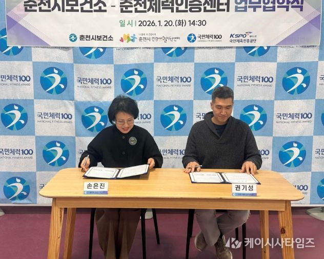 케이시사타임즈 관리자 기자 | 춘천시보건소와 춘천체력인증센터(센터장 권기성)가 20일 강원대 백령스포츠센터에서 춘천시민의 건강증진 활동과 체력수준 향상 및 상호 교류⬝협력 강화를 위한 업무협약을 체결했다.