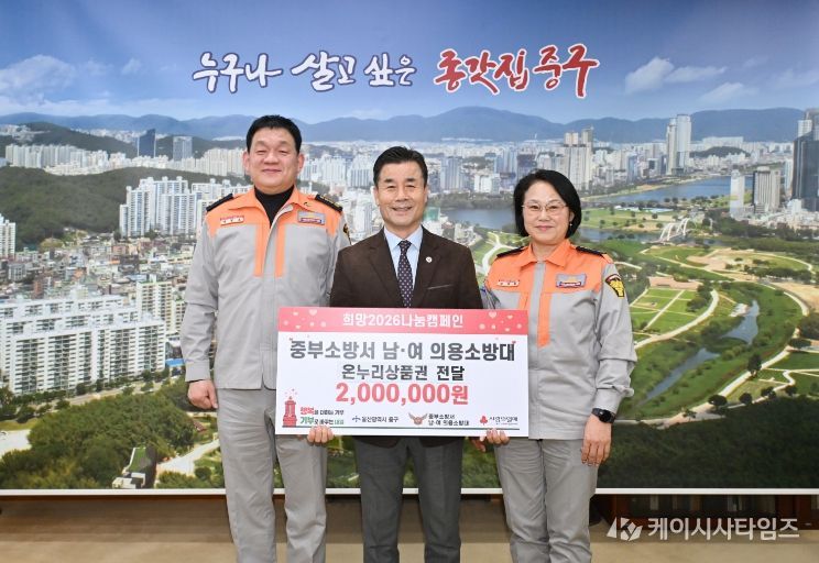 케이시사타임즈 관리자 기자 | 울산 중부소방서 남성의용소방대(대장 이창호) 및 여성의용소방대(대장 김대희)가 1월 20일 오후 4시 30분 중구청 구청장실을 찾아 울산사회복지공동모금회를 통해 이웃돕기 후원금 200만 원을 전달했다.