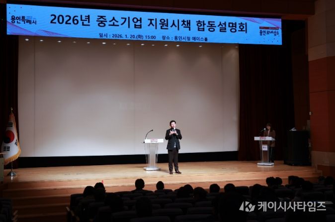 케이시사타임즈 관리자 기자 | 용인특례시는 20일 시청 에이스홀에서 지역 내 중소기업 지원 정책을 설명하는 ‘2026년 중소기업 지원시책 합동설명회’를 열었다.