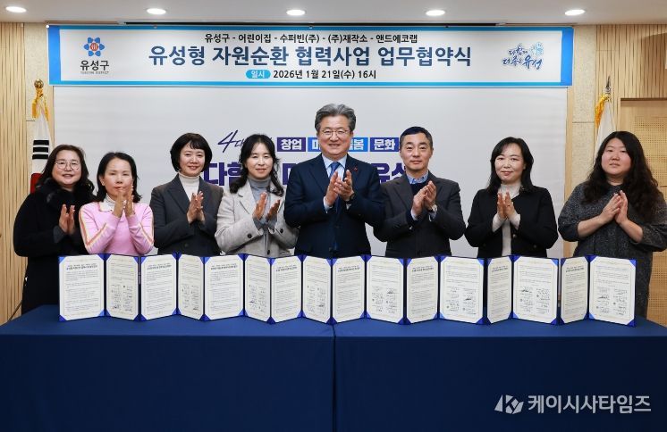 이번 협약은 어린이집과 기업이 협력해 고품질 재활용 자원을 회수하고, 새활용제품 소비와 체험 활동으로 연계하는 선순환 체계를 구축하기 위해 마련됐으며, 대전어린이집연합회 유성구지회·수퍼빈㈜·㈜재작소·앤드에코랩 등 8개 기관이 참여했다.