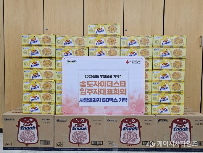 (케이시사타임즈) 연수구는 지난 26일 송도자이 더 스타 입주자대표회의(회장 김소희)로부터 지역 내 취약계층 아동을 위한 과자 60상자를 전달받았다.