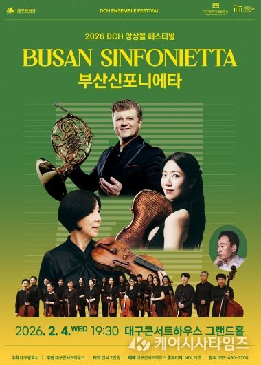 (케이시사타임즈) 대구콘서트하우스가 주최하는 2026 DCH 앙상블 페스티벌이 오는 2월 4일 저녁 7시 30분, 대구콘서트하우스 그랜드홀에서 부산신포니에타의 개막 공연과 함께 본격적인 막을 올린다.