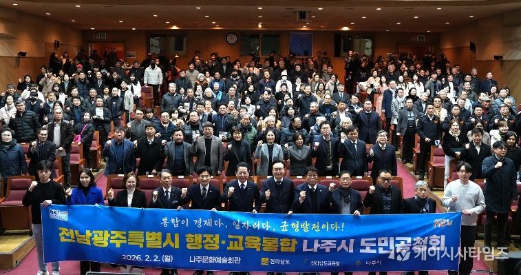 나주시는 2일 나주문화예술회관에서 전라남도와 함께 ‘전남·광주 행정·교육통합 나주시 도민공청회’를 개최하고 통합에 따른 지역 발전 방안과 시민 의견을 청취했다고 밝혔다.